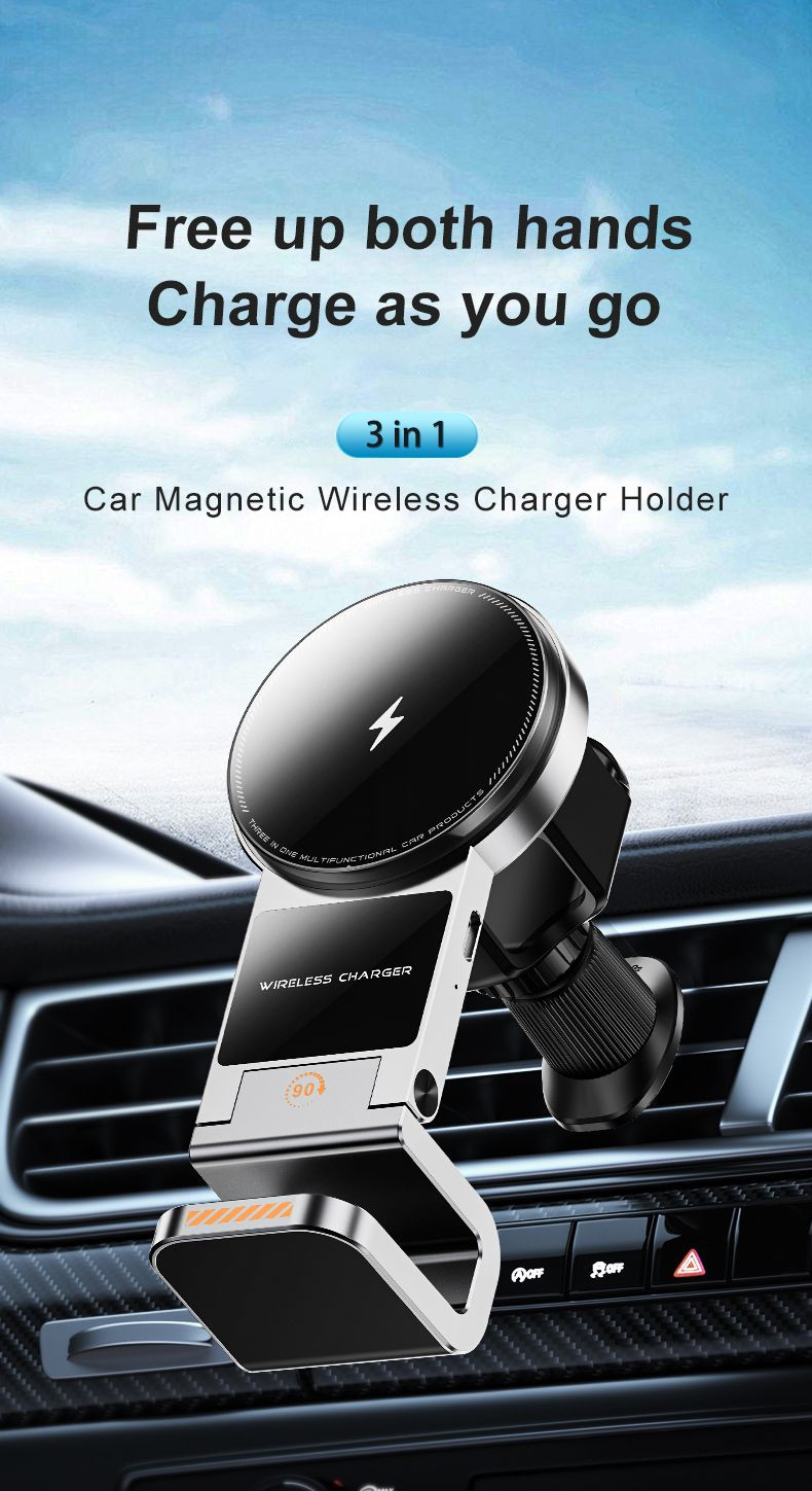 3 in 1 15W Qi Magnetic Wireless Car Charger Phone Holder Mount for Mobile Phone Earbuds Apple Watch